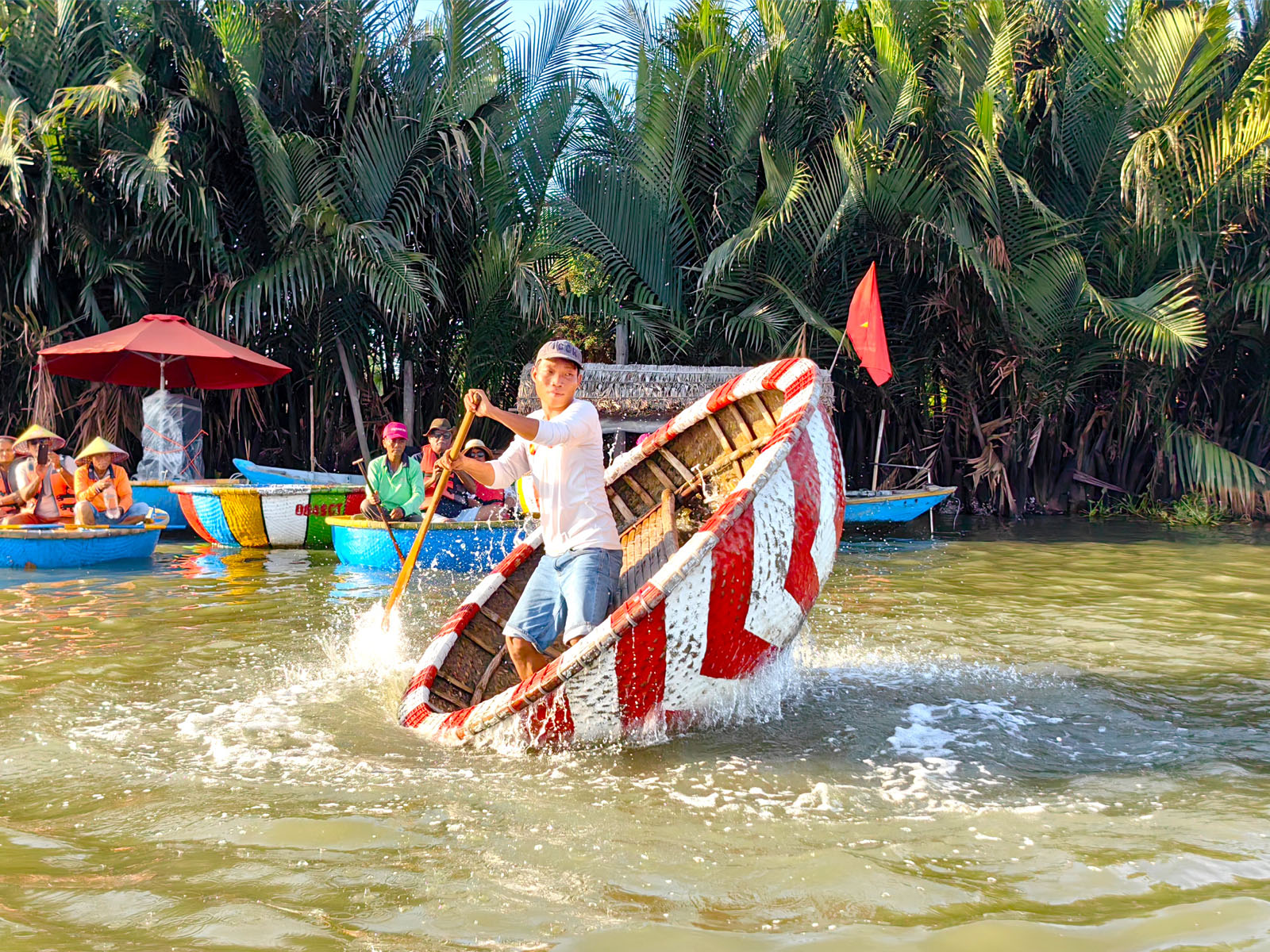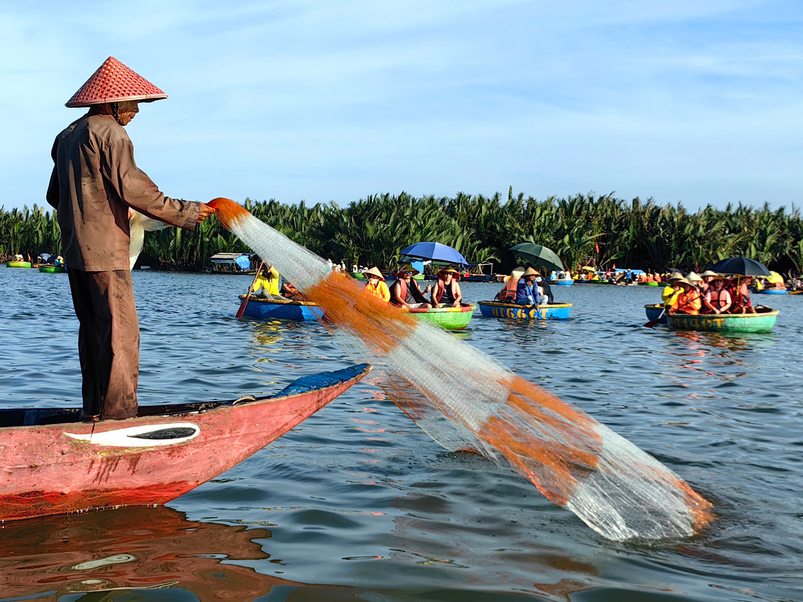 Next stop is the majestic Bay Mau coconut village. Paddling on Thu Bon river by the basket boat then go through and explore Coconut forest around 40 minutes. On the way you go, you will be able to watch basket boat performance spin around and to see how traditionally throwing fishing net where you can observe the daily life of local people.