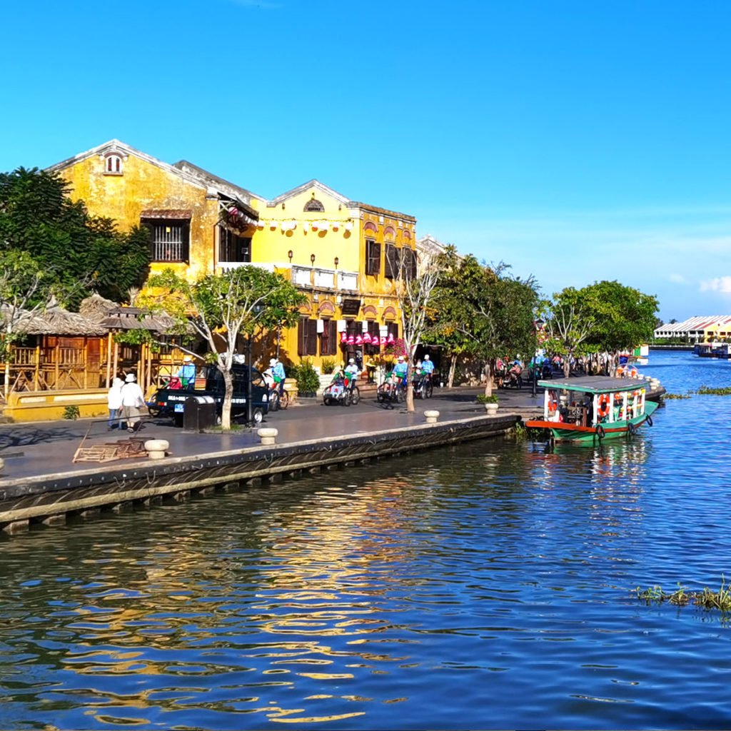 After that we go through the tranquil old streets of the ancient Hoi An with our tour guide, where you can admire the unique design of the ancient houses and visit the most popular sites in the town such as Phuc Kien Chinese Assembly Hall, Tan Ky Old House, Japanese Cover Bridge and Hoi An local market where you can observe the daily life of local people.