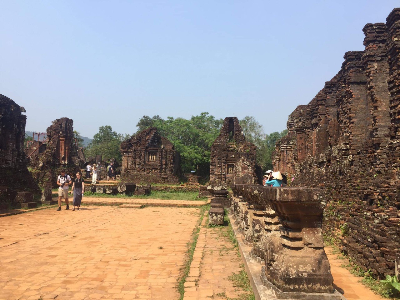 8:30 am: The first stop will be to the majestic My Son Holy Land, one of the three UNESCO World Heritage sites in central Vietnam.It has the history of 1,300 years old, with beautiful temples and statues of God Shiva. Start the trip early in the morning, you can enjoy the memorized beauty of the sun rise in the temples, besides are mountains and clouds. These temples were built and rebuilt from 4th century to 13rd century with the Hindu remains of tower-temples decorated in bas-relief. Until now It is still a mystery for the instructions of Temple. How the Cham people built the temples without glue or cement is till a question to many scientists and archeologists. You’ll walk around with our guide to see the historic and culture ruins of the 13th century, and be brought back to the glorious time of the Champa civilization. During your visit to My Son, the guide will show you the remains of special brick tower, explain the origin and historical significance of the site including the meanings of each tower or monument. The trip to My Son will help you learn about the Champa Kingdom and their relationship with the temples at My Son. You can also enjoy the beautiful views of valley surrounding by jungles.